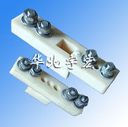 导电器:为接簧支撑式,仅在滑触线下部即可推入,但须在牵引器同步进行,并保证拉簧力量适当,以免加大电刷磨损。牵引器与导电器同步进行,可用螺栓或电焊方式固定在行车等移动电器上,并适当保证导电器运行不受扭力。